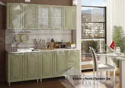 Линейный гарнитур в неоклассическом стиле из крашеной плиты МДФ.