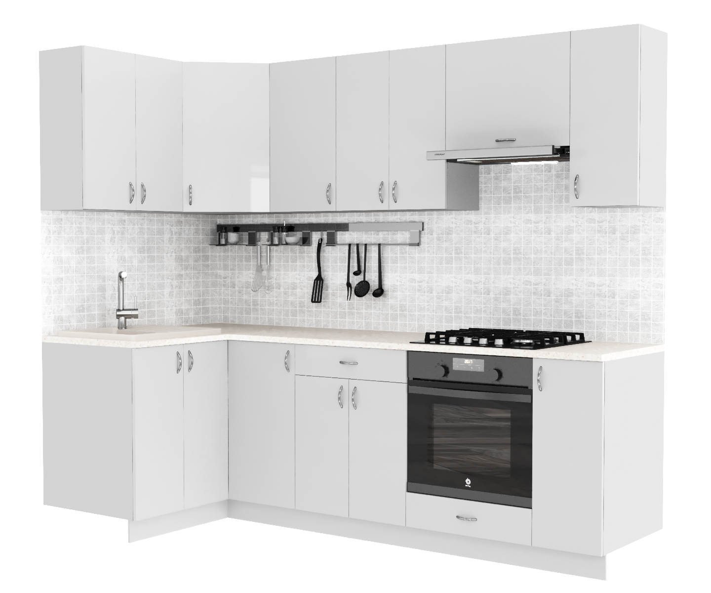 Интегрированные ручки, верхние фасады с системой tip-on, качественные материалы.