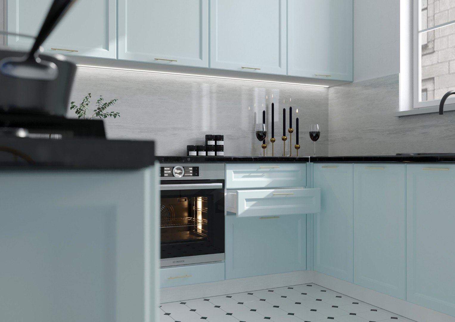 Кухня угловая «Тулиппа 3.2х2.0м» Небесно-голубой