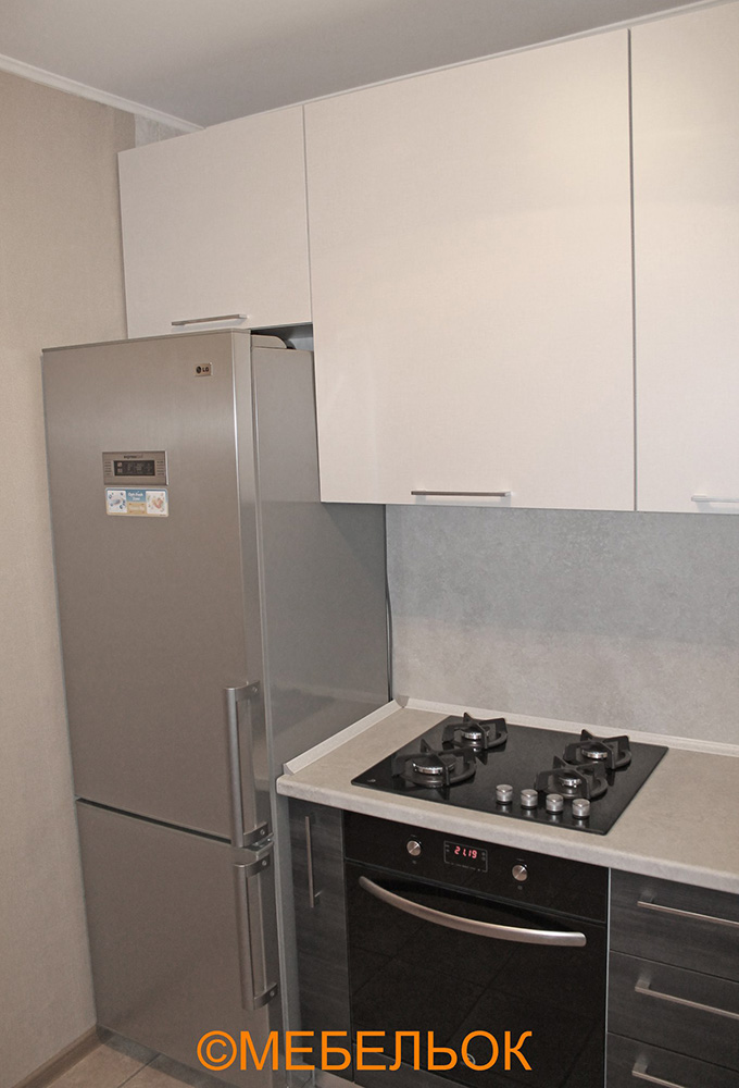 Линейная кухня из ЛДСП с глянцевыми фасадами