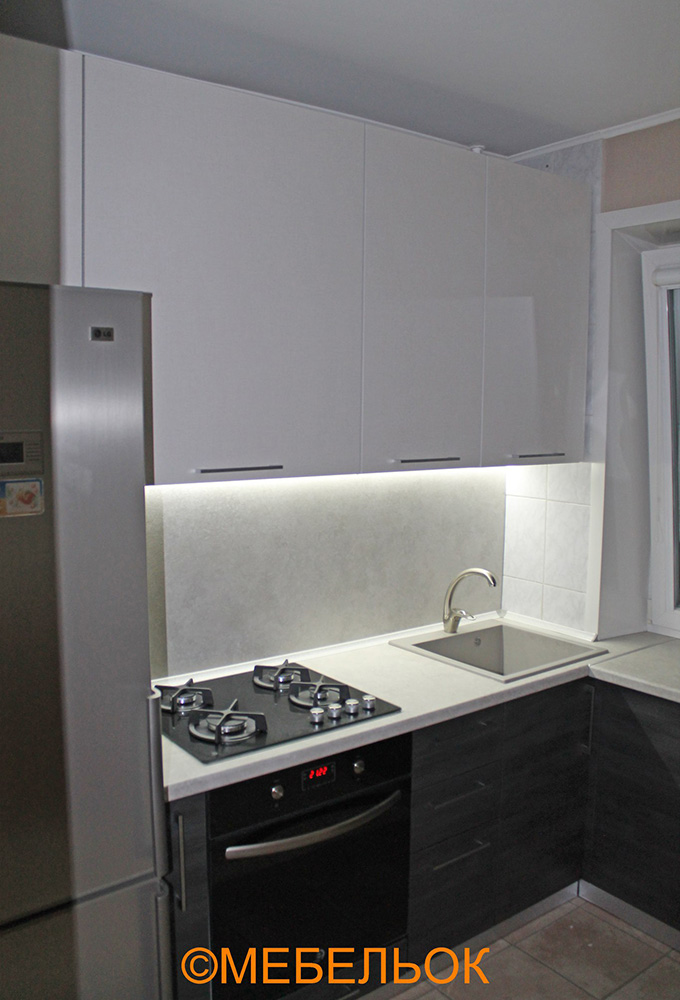 Материал фасада и корпуса: ЛДСП 16 мм. Ширина кухни 190 см.