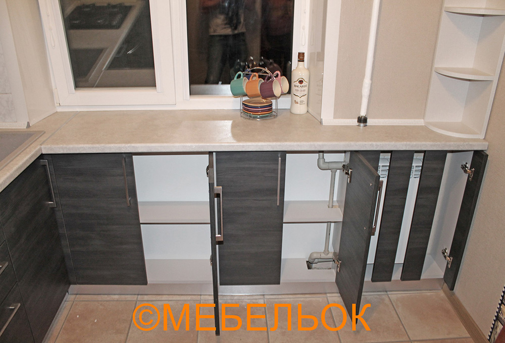 Материал фасада и корпуса: ЛДСП 16 мм. Ширина кухни 170 см.
