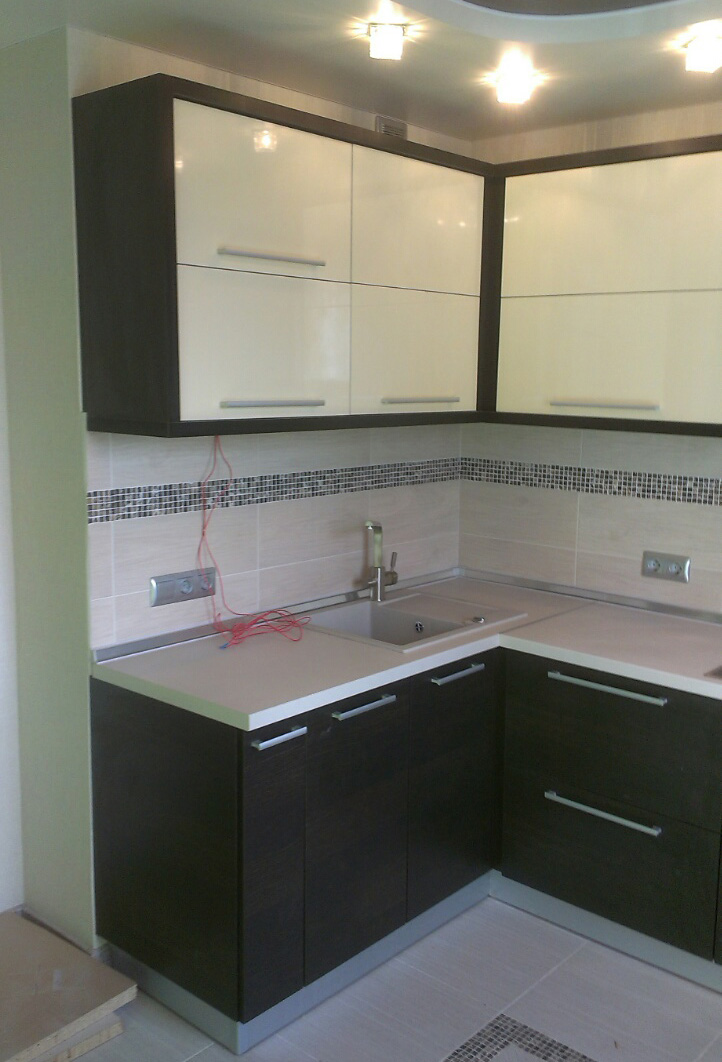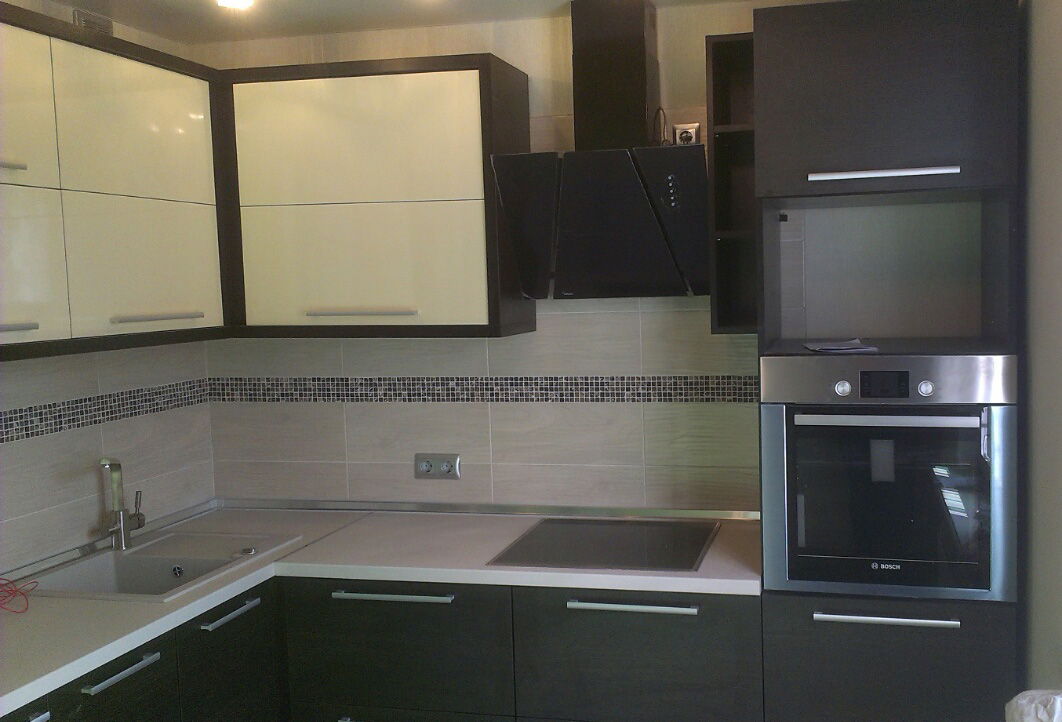 Угловая кухня с профильной ручкой и фасадами из МДФ и ДСП