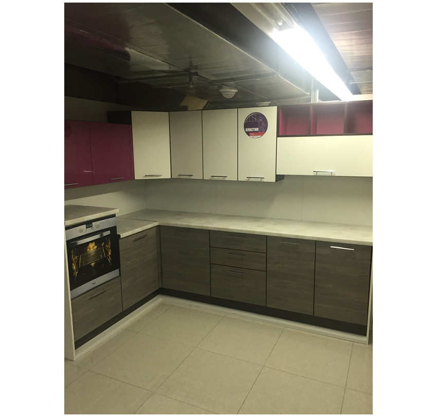 Угловая кухня, выполненная из пластика, состоит из шкафчиков, выдвижных ящиков и открытых полочек, которые помогут создать в комнате комфортную обстановку. Широкая столешница из ударопрочного материала позволит разместить необходимые кухонные принадлежности и продукты для приготовления пищи.