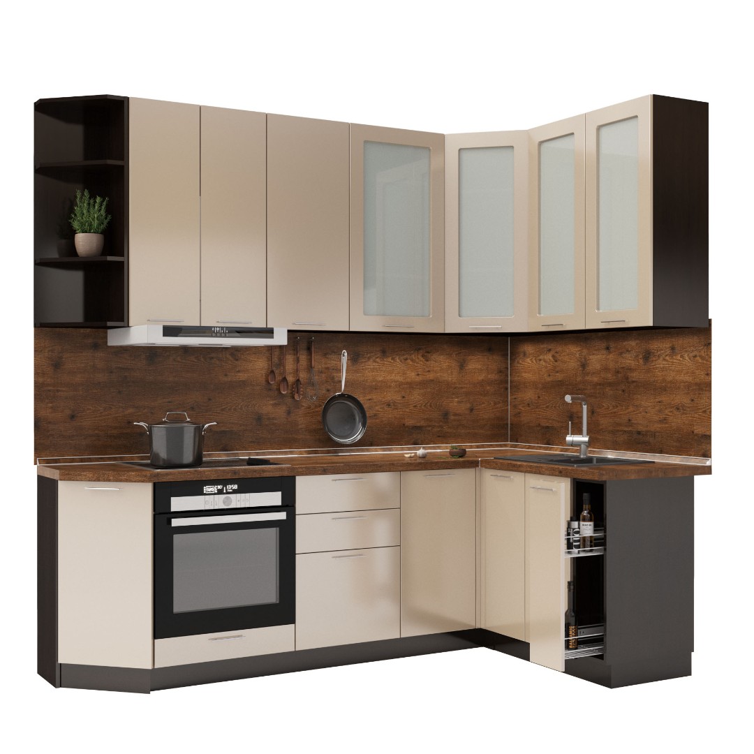 Кухня угловая «Валерия 2.4х1.4м» - Капучино глянец