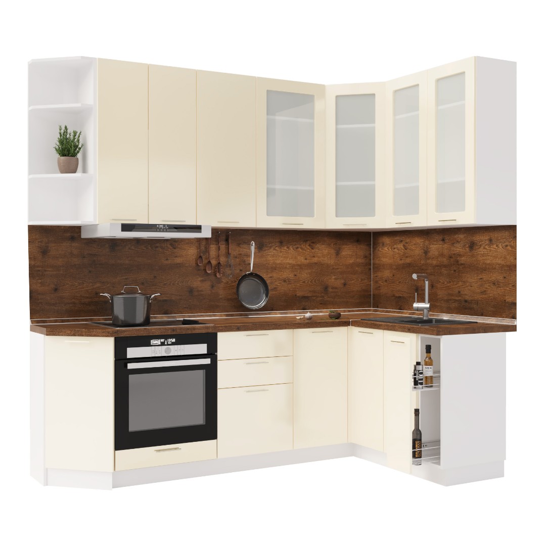 Кухня угловая «Валерия 2.4х1.4м» - Ваниль глянец