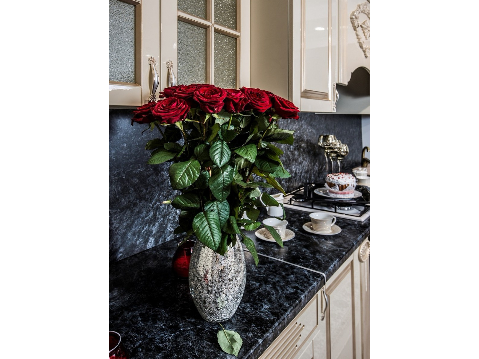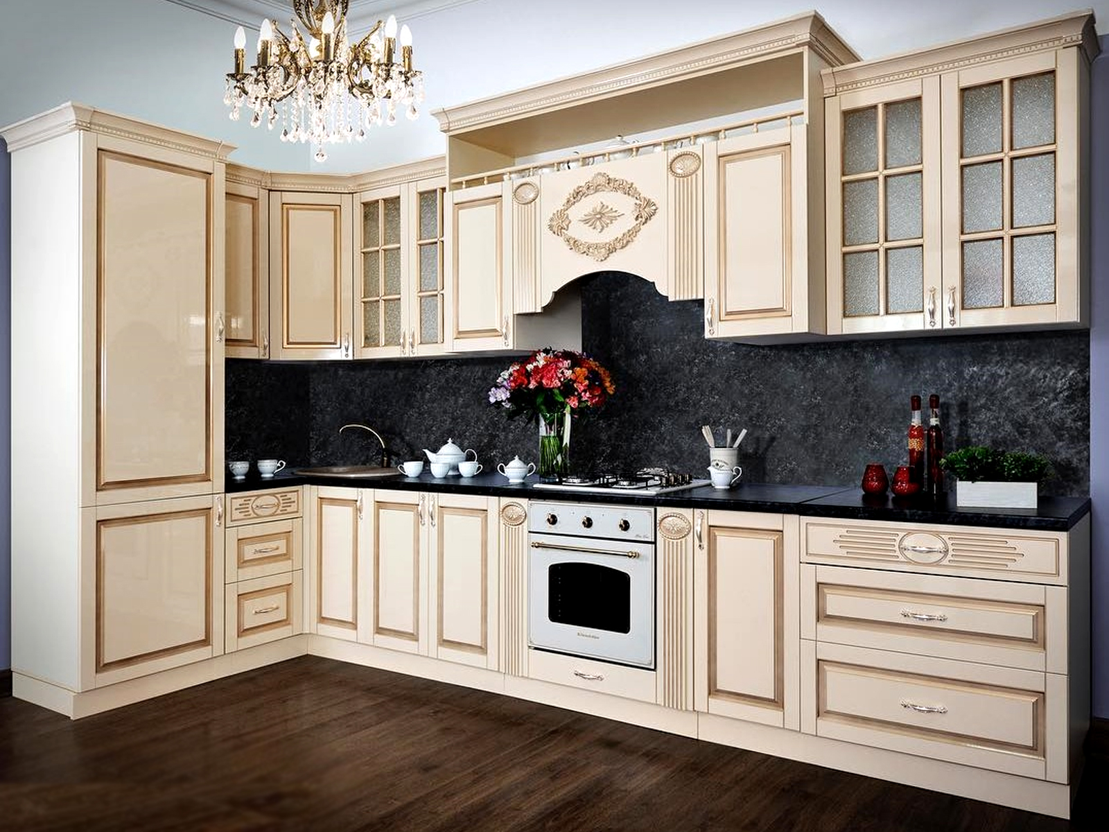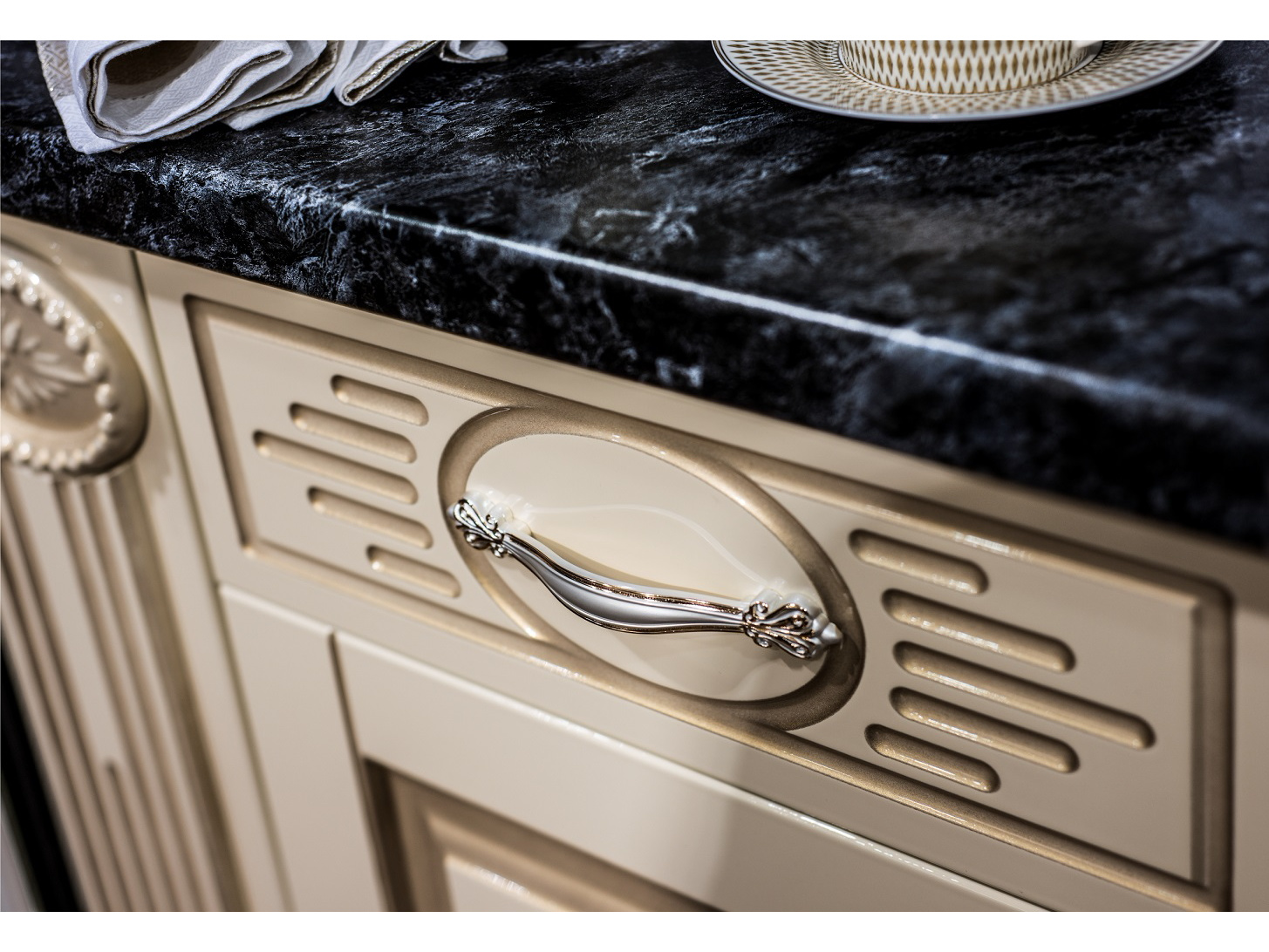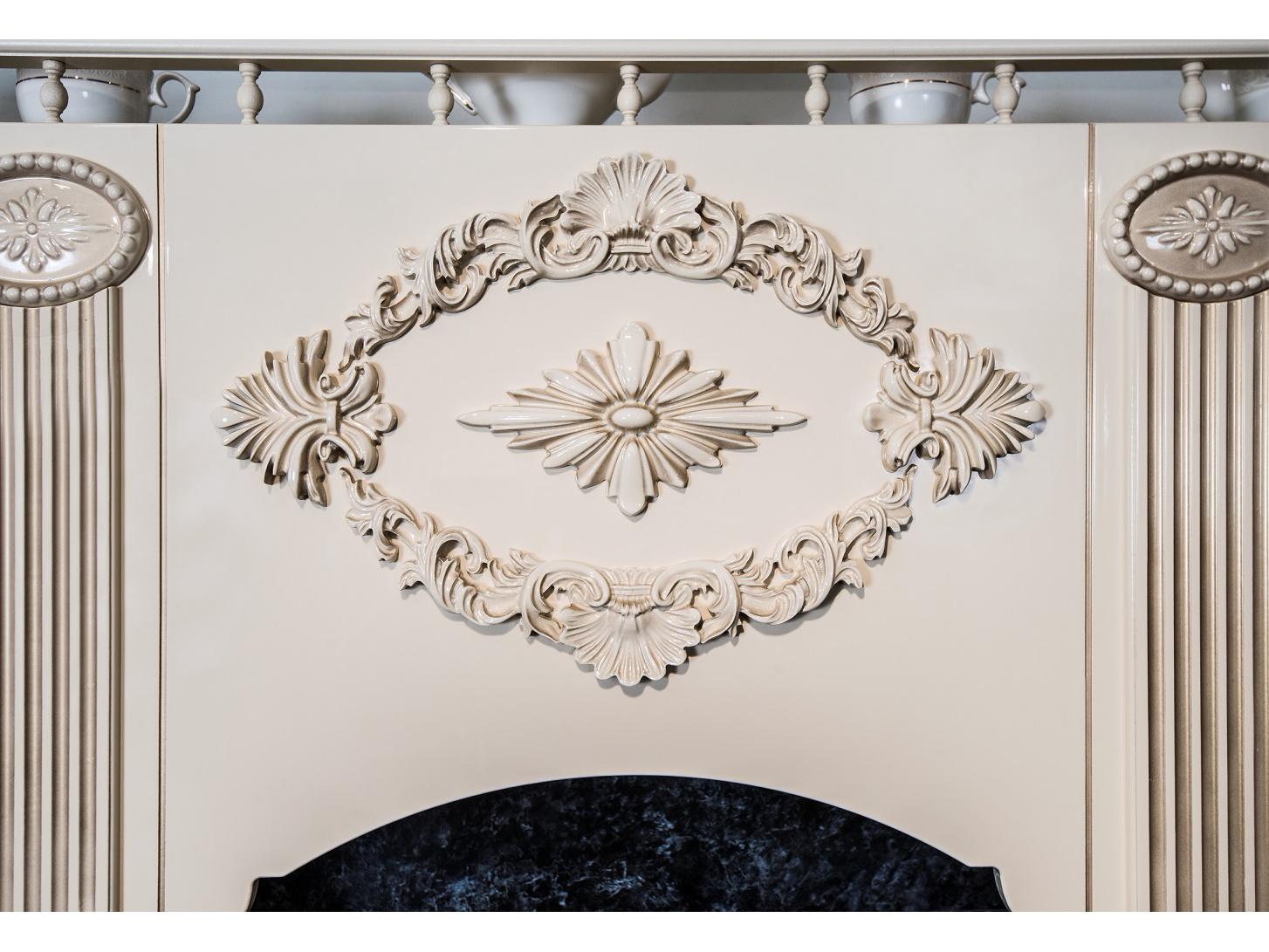 Декоративные элементы, фасады, накладки окрыты темной патиной и матовым лаком на водной основе.