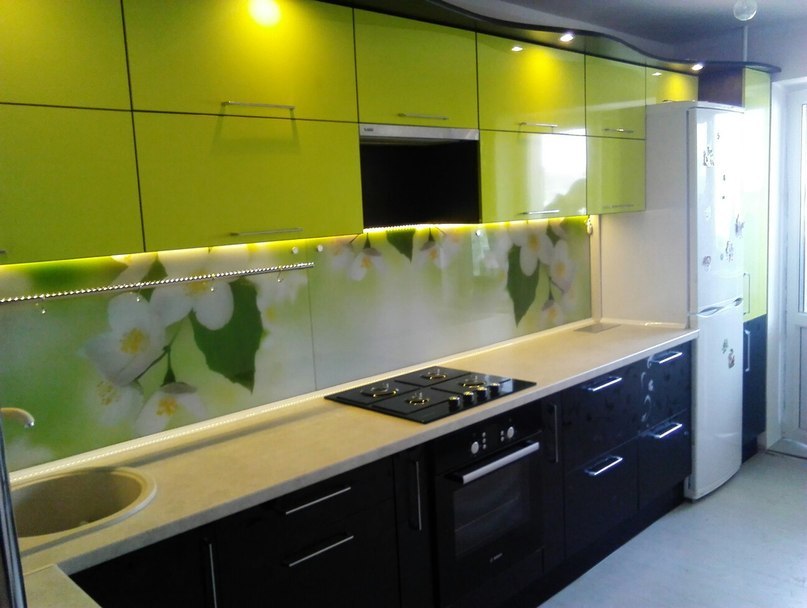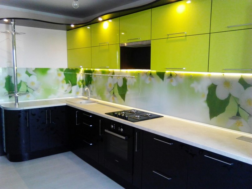 Кухня угловая Желтый глянец - Черный 3D