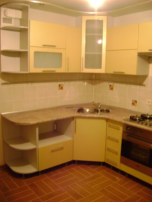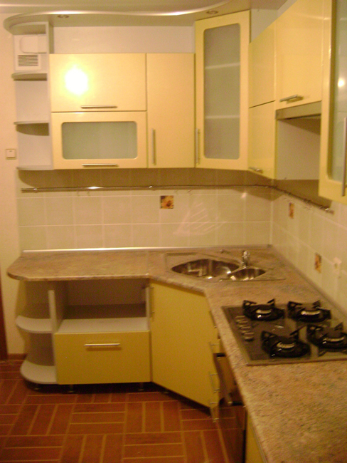 Классическая бежево-коричневая расцветка. Столешница 26 мм из постформинга.