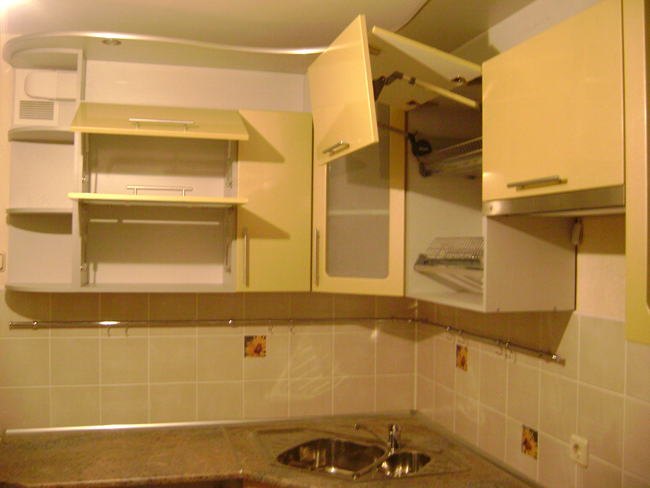 Матовые фасады из ламинированной ДСП в разных цветах.