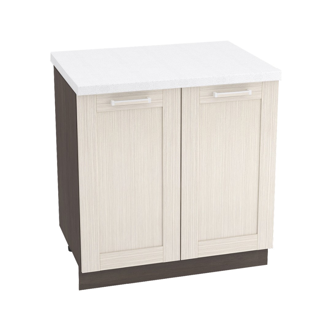 В данной линейке используются сборные рамочные фасады из МДФ профиля 16 мм (обвязка) и ХДФ 4 мм (филенка) с ПВХ-покрытием, имитирующим текстуру дерева.