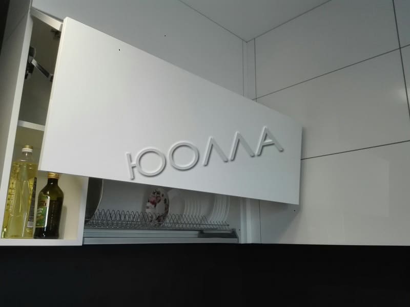 Кухня изготовлена со скрытыми креплениями и фурнитурой по немецкой технологии "Фолдинг".