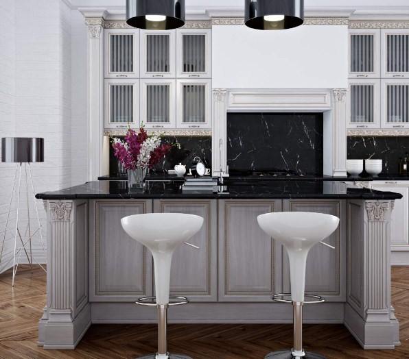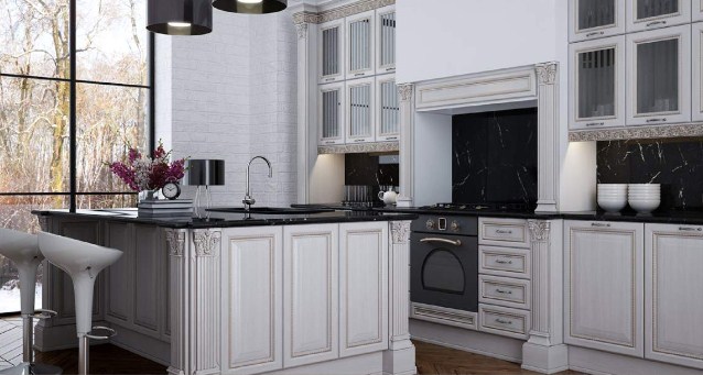 Кухня Монтанья в классическом стиле с глянцевой столешницей
