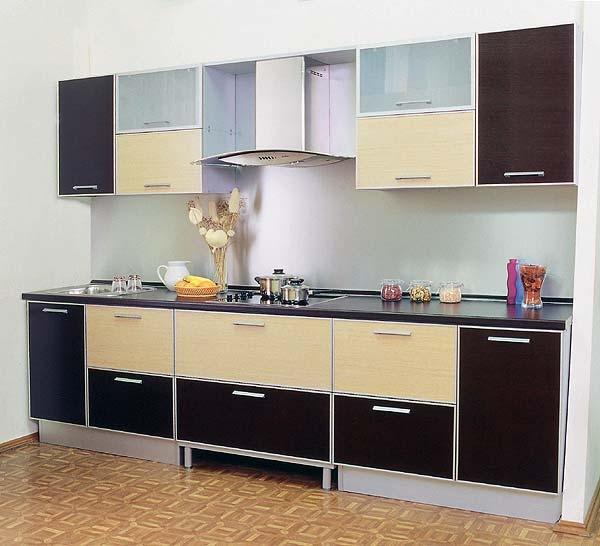 код 103218Качественная прямая кухня. Две полки с стеклянными дверцами.