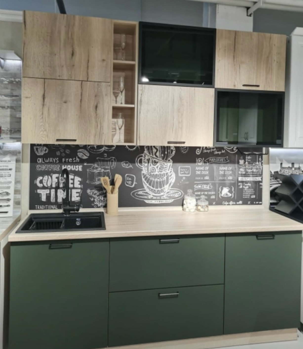 Кухня «Гранд» Белый/Зеленый 2,1 м