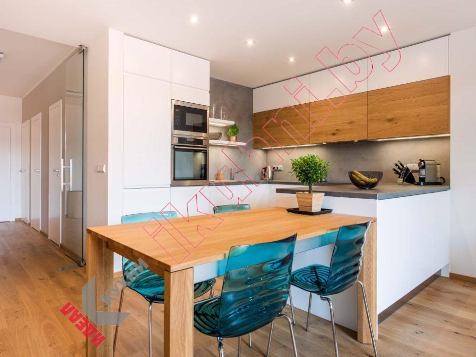 Кухня в крашенном МДФ с обеденным столом