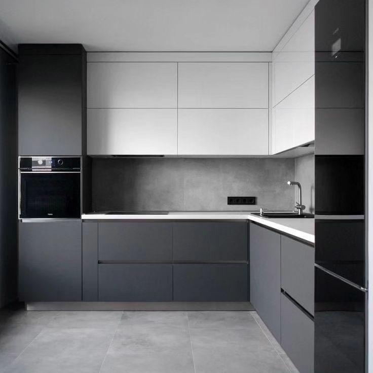 Матовая современная кухня без ручек с подсветкой