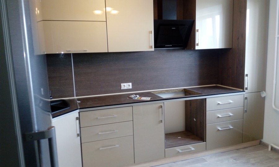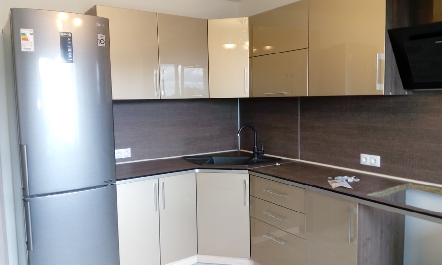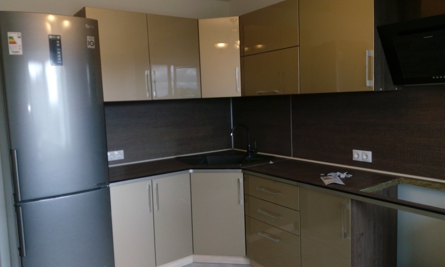 Угловая кухня «Mix-19» 2.7х1.7 м, бежевый песок-венге мали