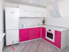 Цвет фасадов комбинированный: белый, нежно-розовый. Белая столешница.