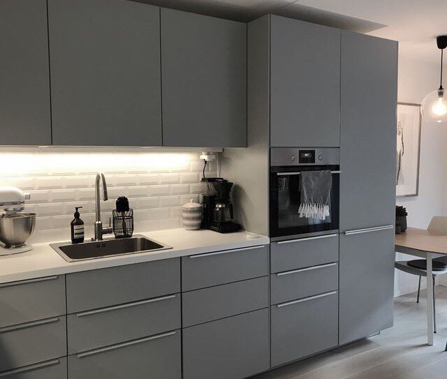 Контрастные оттенки верхней и нижней линии шкафчиков.