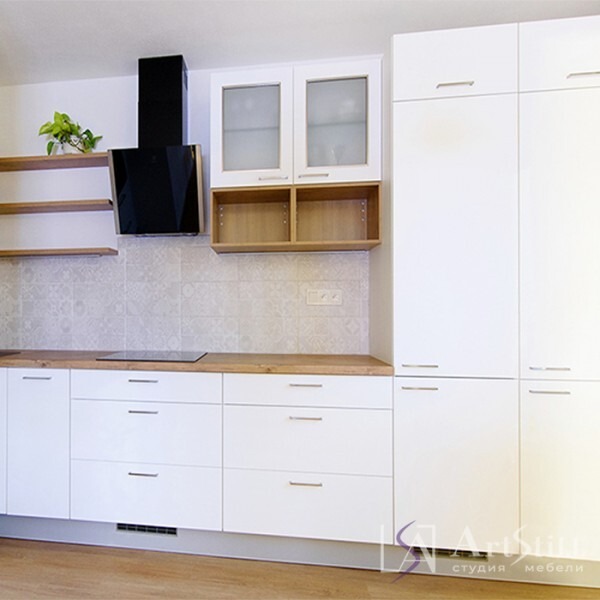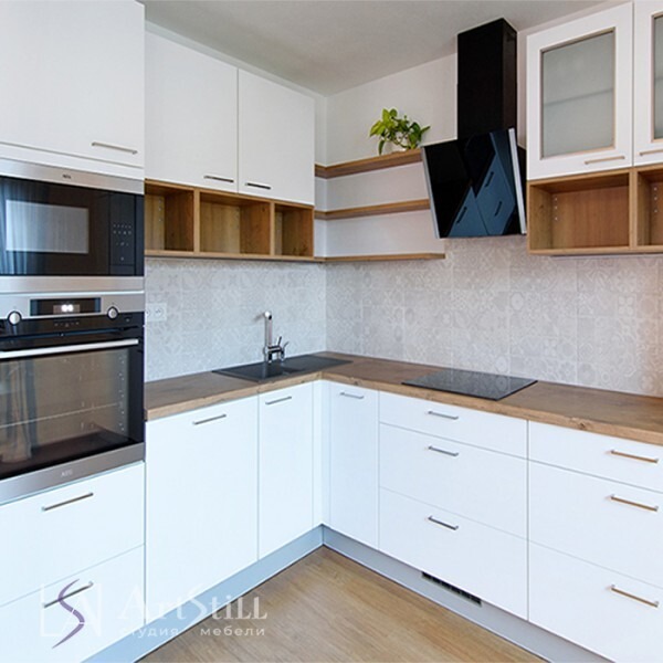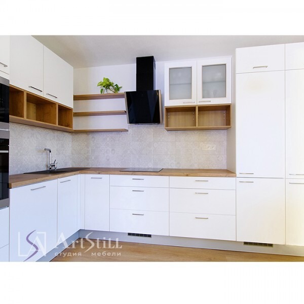 Кухня угловая с пеналами выполнена в «Скандинавском стиле»