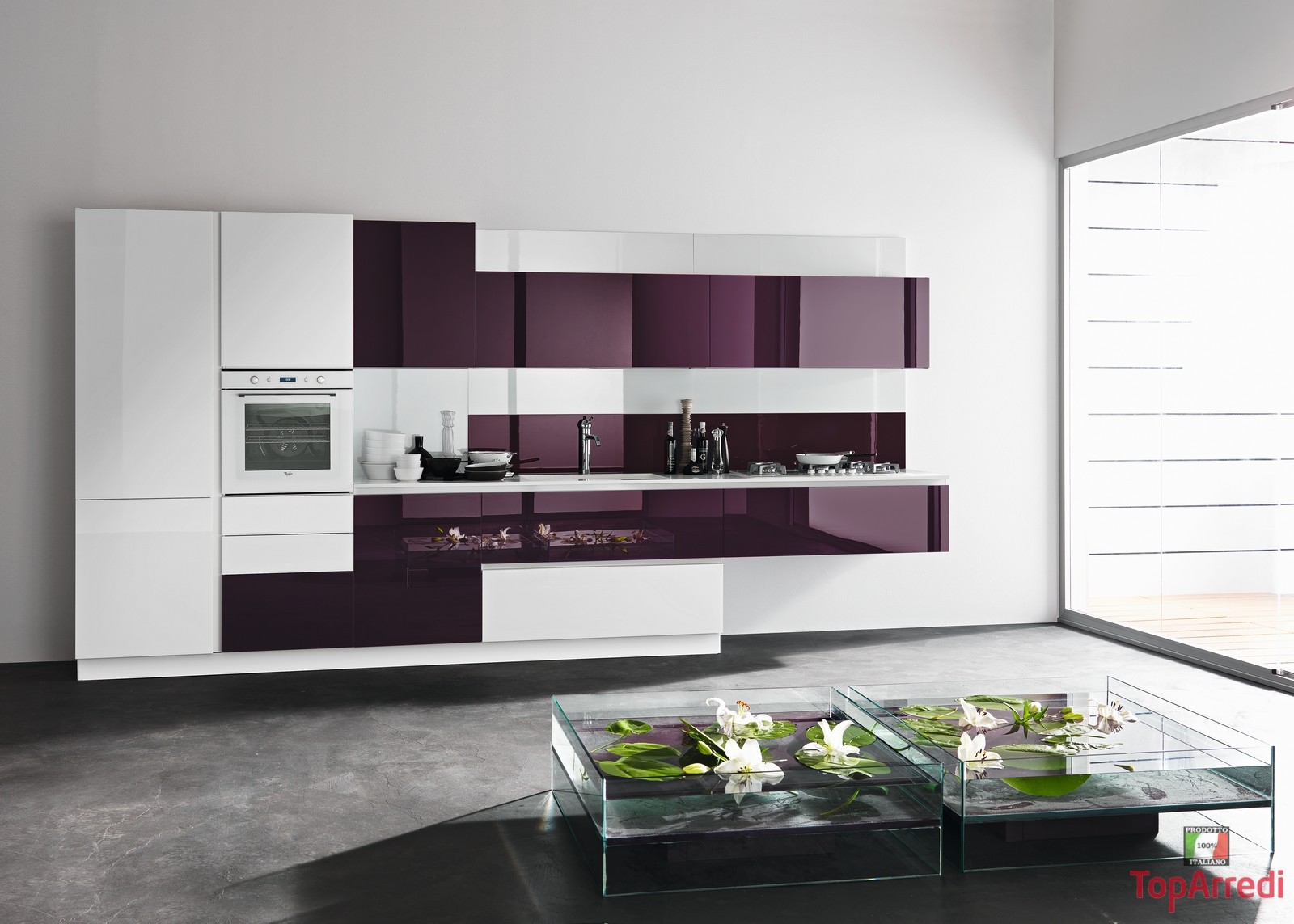 Кухня в современном стиле бело-бордовая