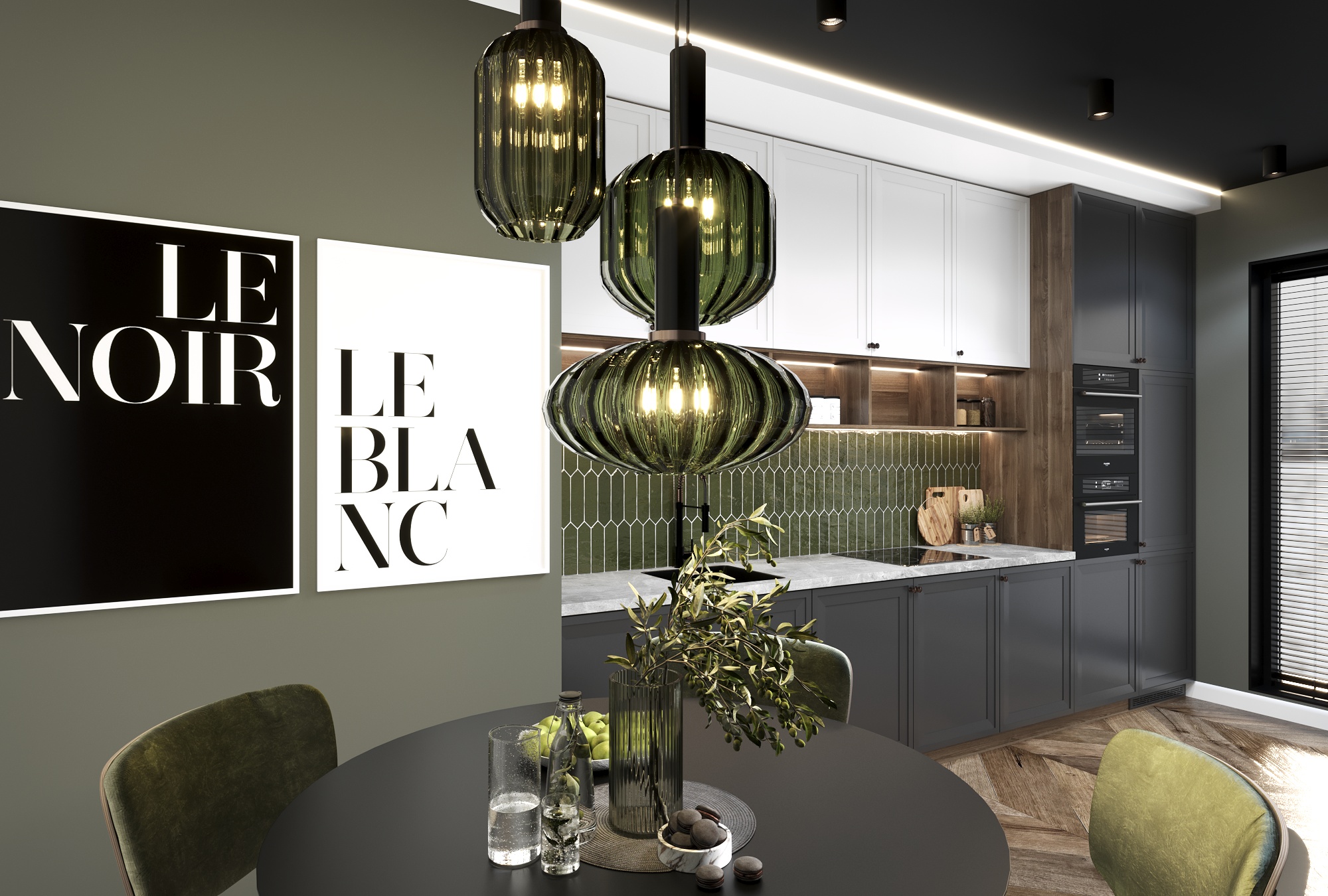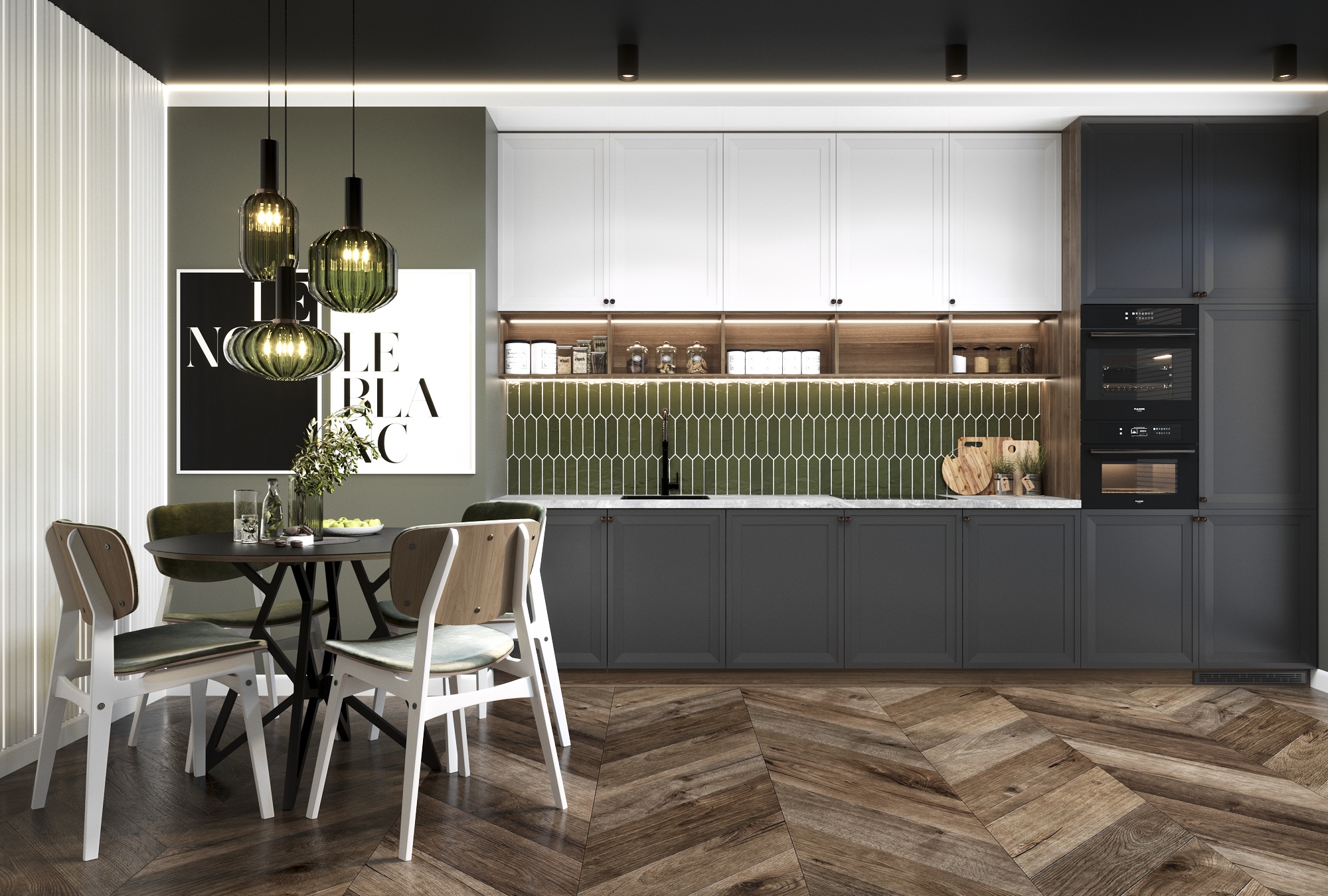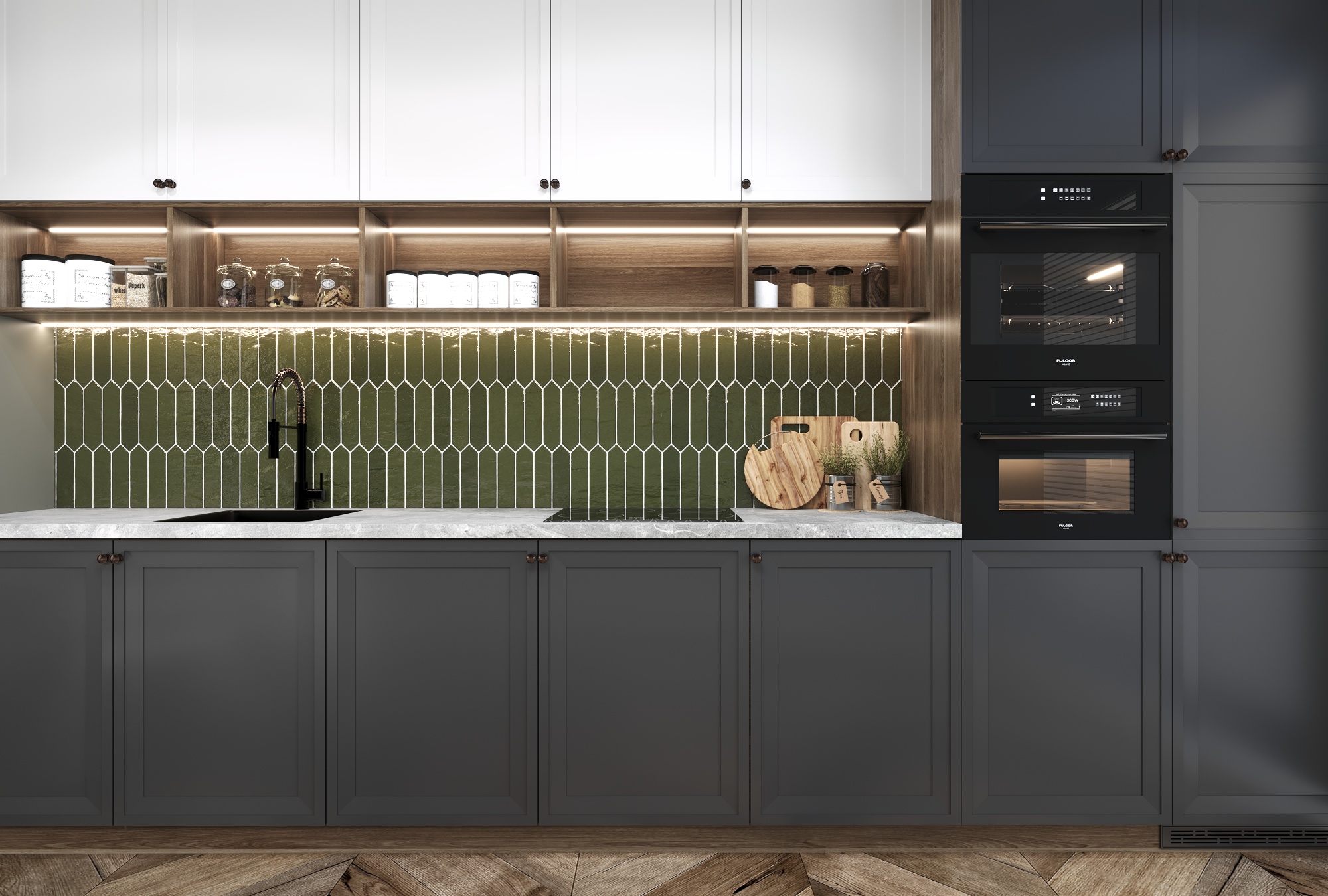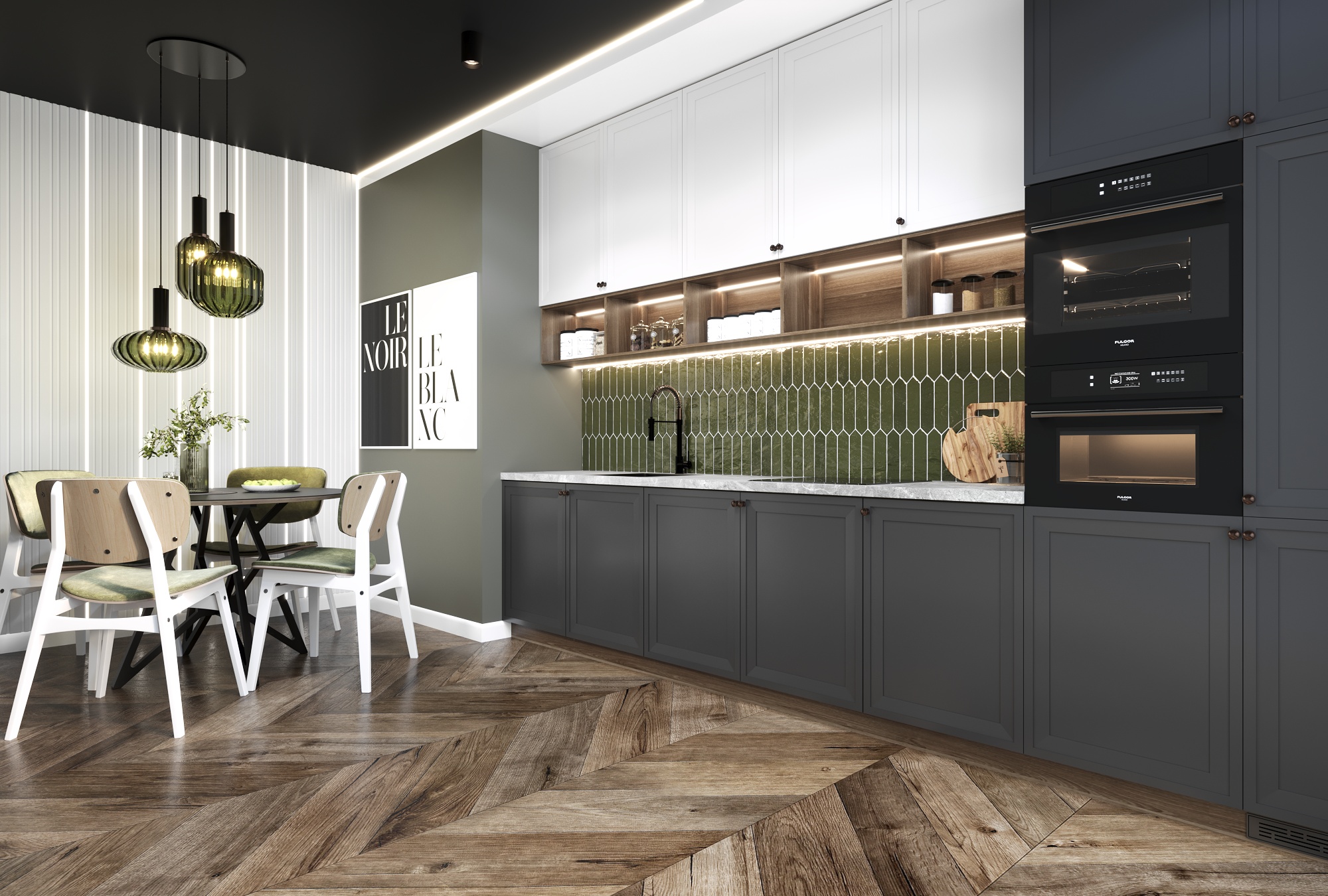 Современный дизайн. Фасады без ручек. Ниши для встраиваемой техники.