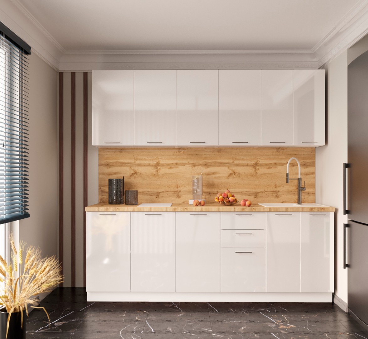 Прямая кухня «Адель CH-114» МДФ 2.0 м, жемчуг текстурный