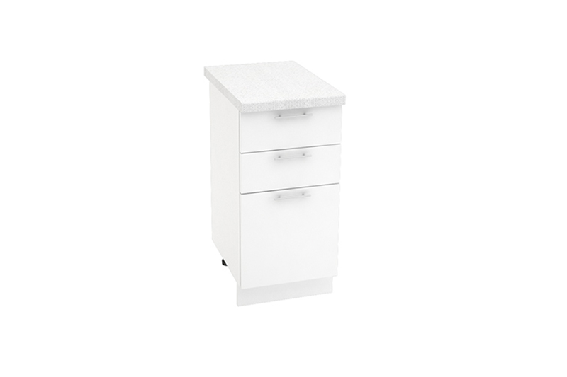 В комплекте распашные шкафы и тумба с тремя шуфлядами.