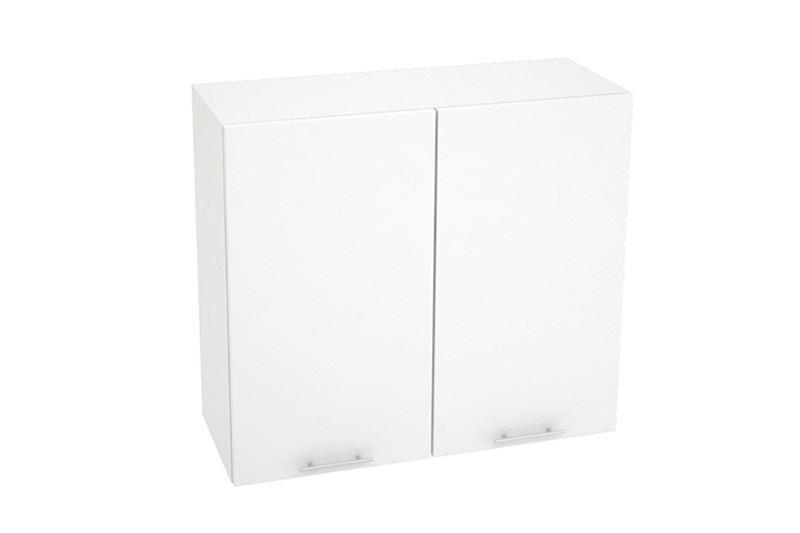 Верхние фасады без ручек, нижние – с ручками из металла.