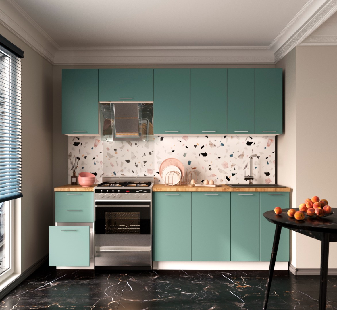 Кухня «Лира-Лайт» 2,5 зеленый-оникс