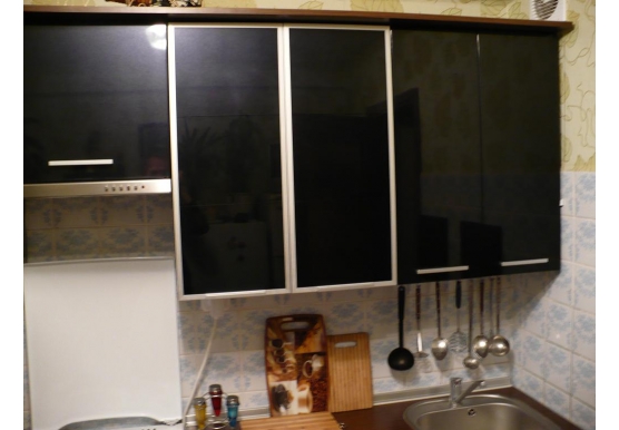 Дополнительно: Корпус - ДСП ламинированное «Kronopol» (Польша) – цвет белый гладкий. Фасады – МДФ крашенный - краска "Saerlak" (Гемания); алюминиевый профиль «Zobal» + стекло лакобель. Постформинг – «Getalit» (Германия).