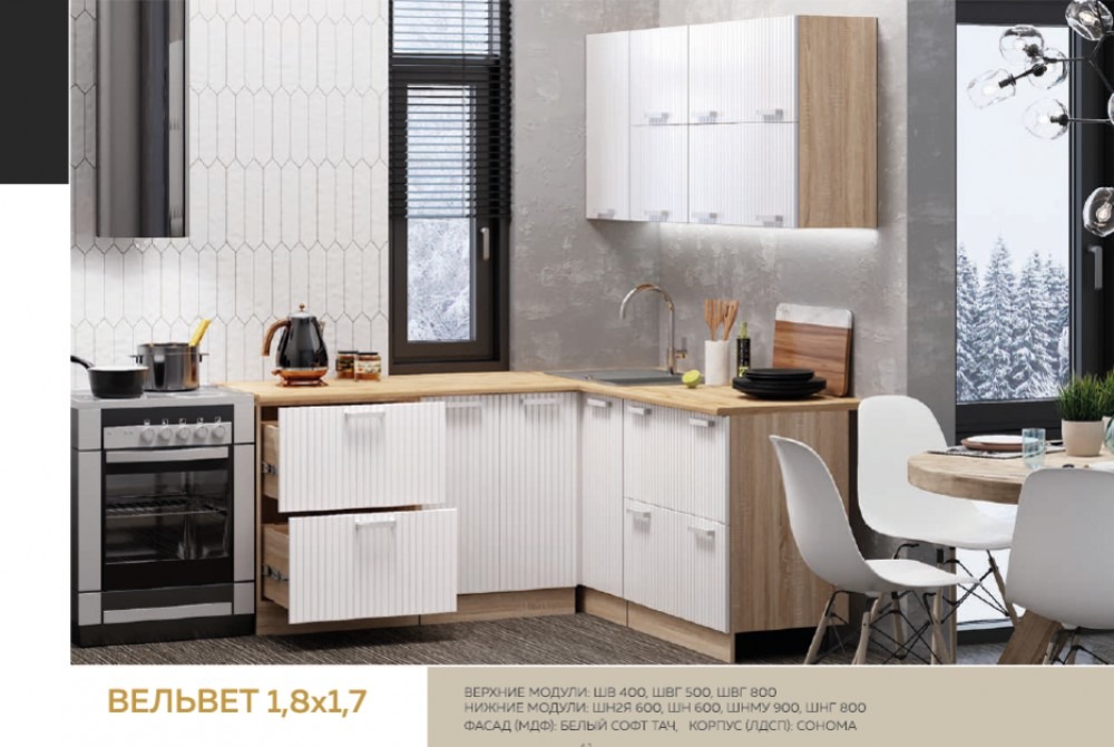 код 153308Размеры и расцветка кухни формируются индивидуально.