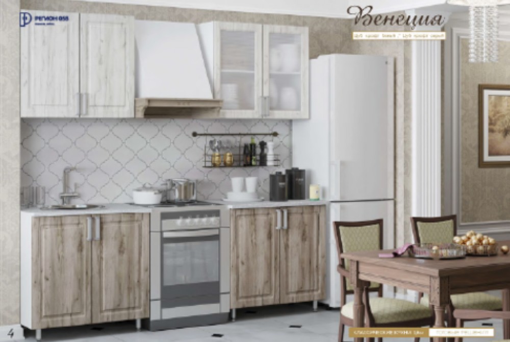 Цена указана за кухню шириной 2,6 метра, что на первом фото. В наборе восемь модулей: шкаф верхний 800 мм, шкаф верхний 400 мм, шкаф верхний 600 мм, шкаф верхний стекло 800 мм, шкаф нижний мойка 800 мм, шкаф нижний с ящиками 400 мм, шкаф нижний 600 мм, шкаф нижний 800 мм.