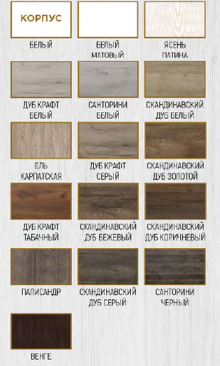Цвета фасадов: скандинавский дуб, венге, ольха, белый, ясень патина, палисандр, ель карпатская