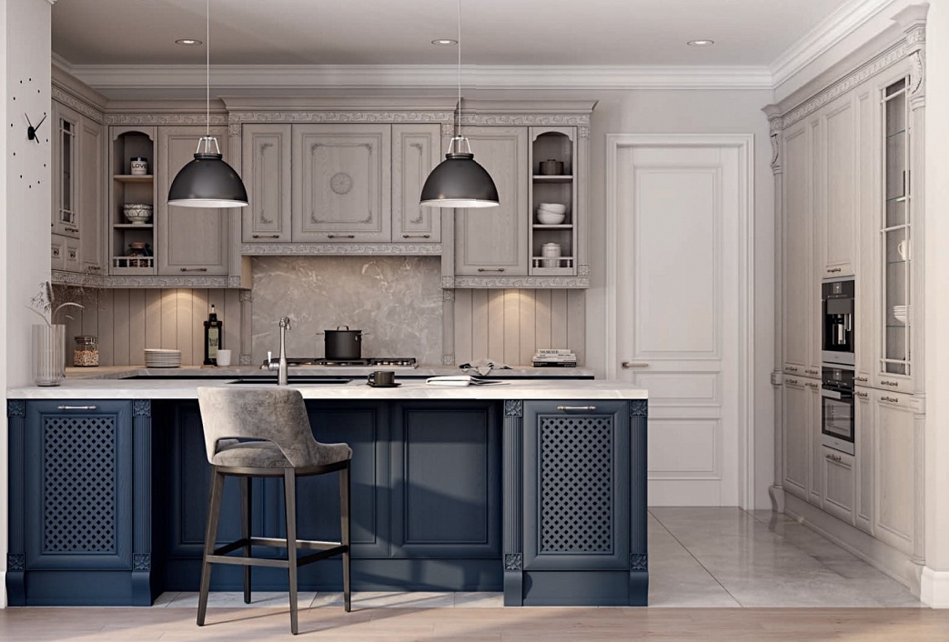Кухня Савойя выглядит дорого и шикарно за счет своей простоты, строгости форм и грамотного цветового решения.
