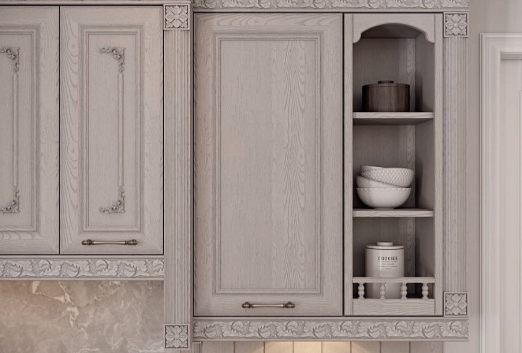 код 114268П-образная кухня из массива в неоклассическом стиле. Фабрика: ЗОВ.