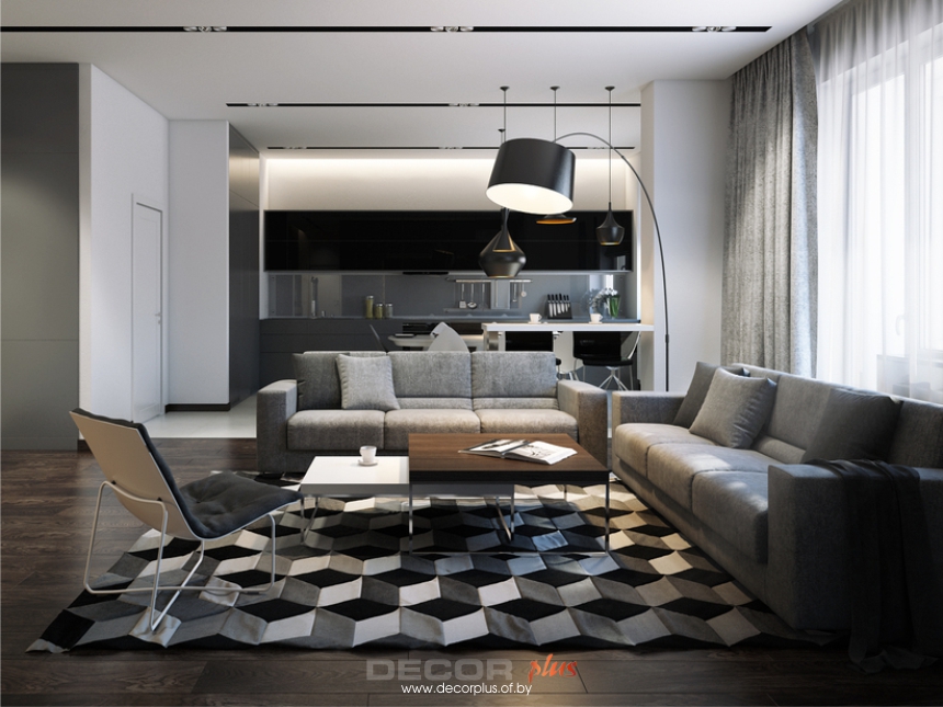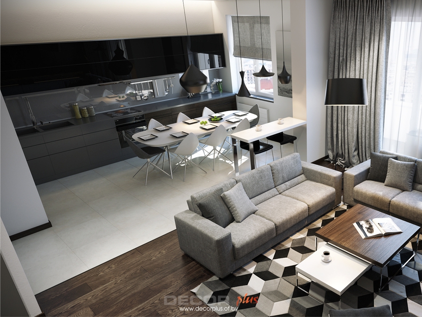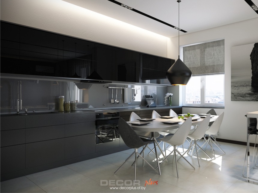 код 85044Кухонный гарнитур в серых матовых и черных суперглянцевых тонах.