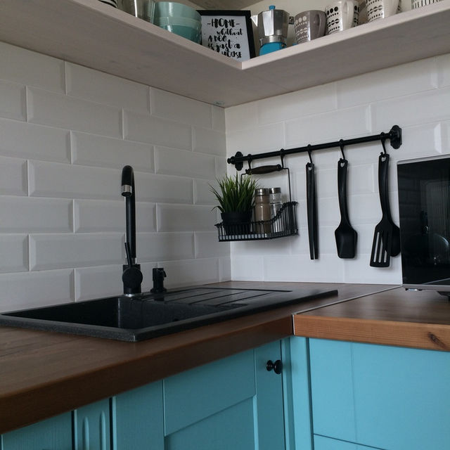 Лаконичные матовые ручки. Стеклянные вставки.