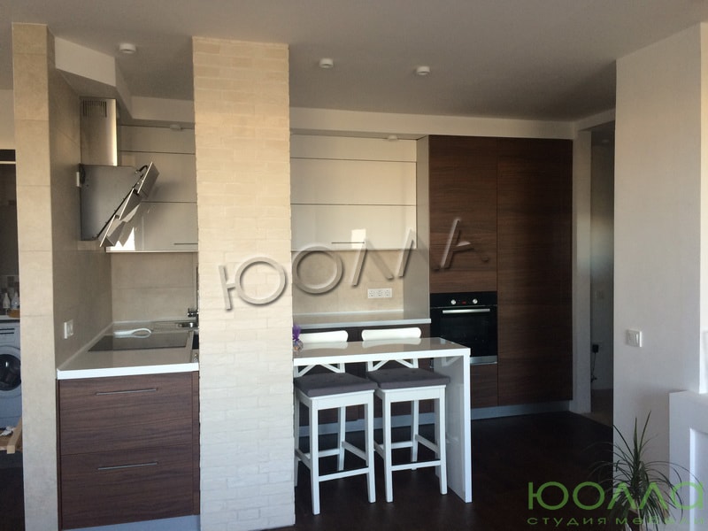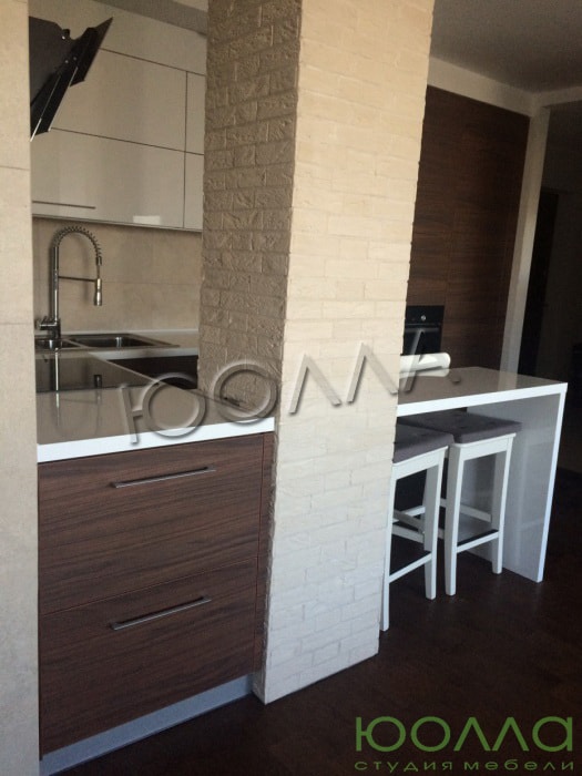 низ - древоподобный итальянский пластик Abet; верх - МДФ крашеный глянец