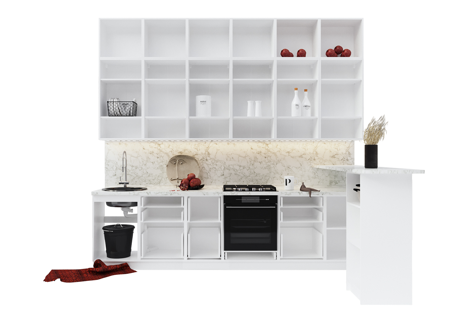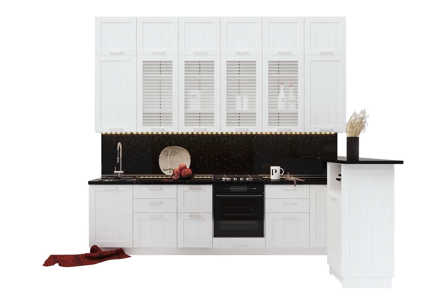 Линейная кухня в черно-белом цвете