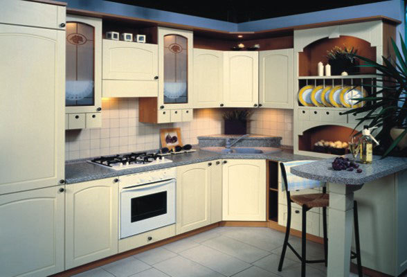 Угловая кухня в классическом стиле молочного цвета