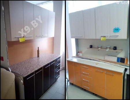 Габаритные размеры кухонного гарнитура: глубина нижнего уровня 600 мм, высота нижнего уровня 860 мм, глубина верхнего уровня 320 мм, высота верхнего уровня 720 мм, глубина кухонной столешницы 600 мм.