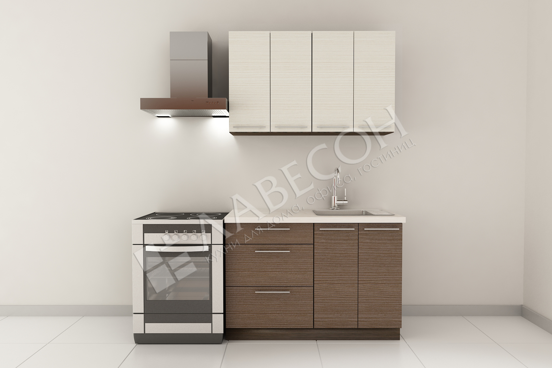 Кухня «Вудлайн крем - Вудлайн мокко» 1,2м с выдвижными ящиками