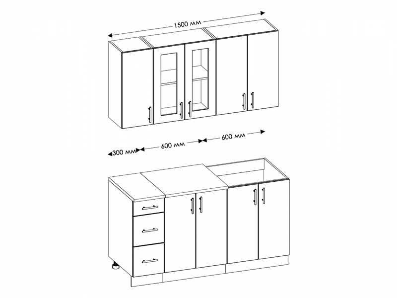 Материал корпуса и фасадов – ЛДСП. Ширина кухни 240 см.