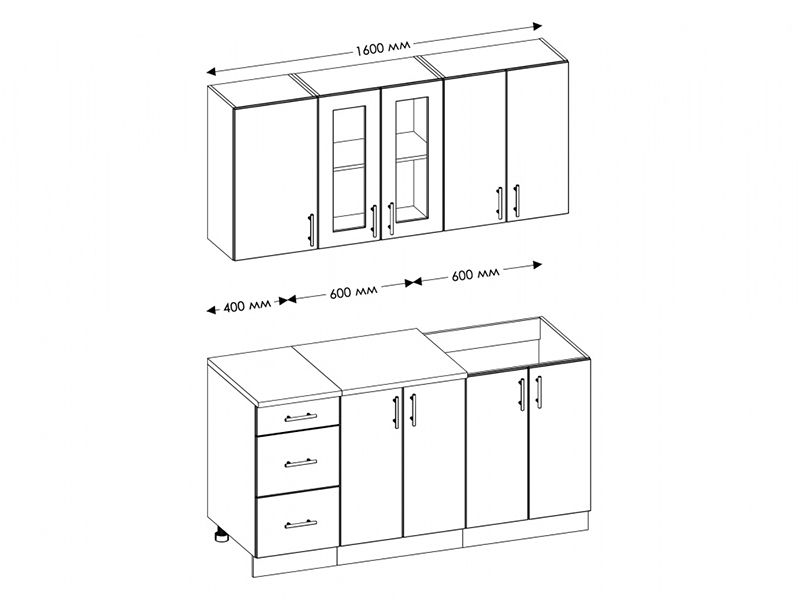 Кухня длиной 160 см. Фасады из ДСП двух цветов.