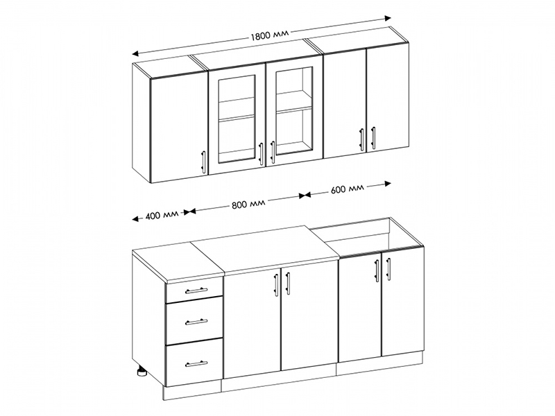 Длина кухни: 180 см