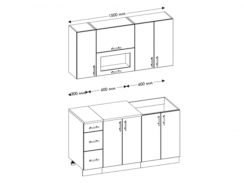 Кухня «Вяселка Д1» пленка-металлик 1500 мм