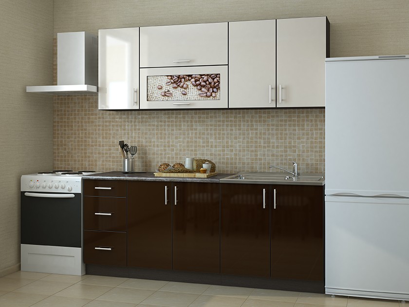 Материал фасада и корпуса: ЛДСП 16 мм. Ширина кухни 210 см.