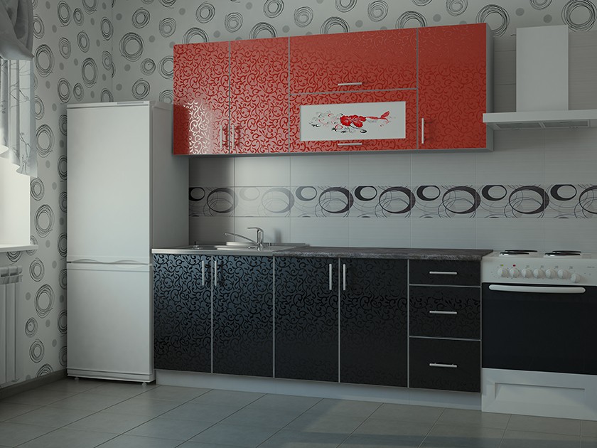 Угловая кухня с черно-белыми глянцевыми фасадами